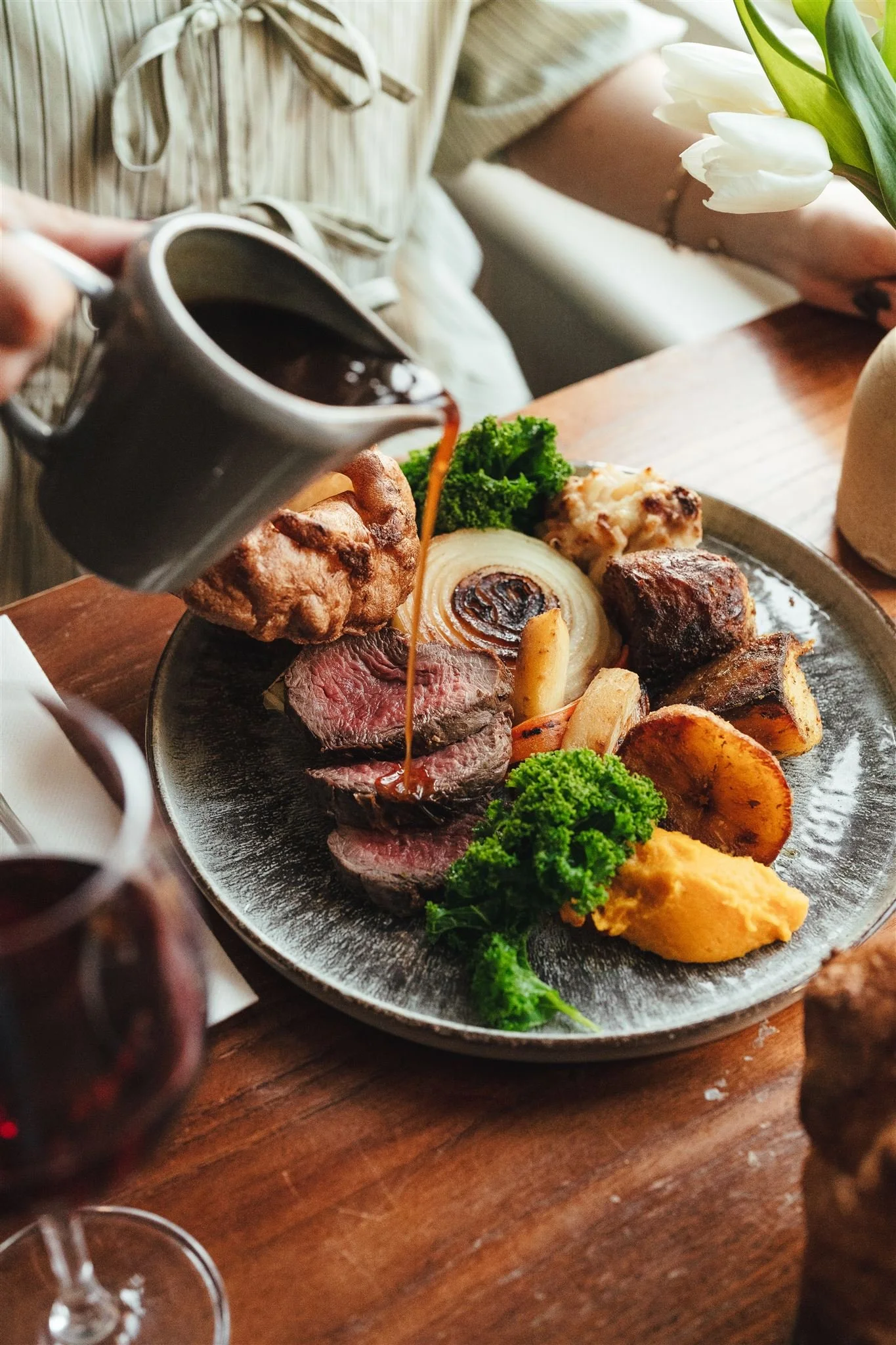 Expect a mix of pub classics and lighter, more contemporary dishes, plus daily specials that reflect what’s available and at its best. Sundays are all about traditional roasts with all the trimmings.